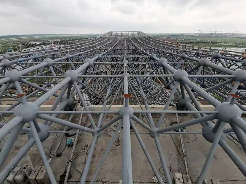 吉利飛行汽車項(xiàng)目汽車展廳鋼結(jié)構(gòu)工程,主體是直徑32米的橢圓形空間桁架結(jié)構(gòu),本工程加工工藝復(fù)雜,構(gòu)件數(shù)量多且雜,車間及現(xiàn)場(chǎng)焊接工作大,主構(gòu)件對(duì)接焊接均要求一級(jí)焊縫,施工期間兩臺(tái)全站儀同時(shí)不同角度測(cè)量,配合臨時(shí)支撐架現(xiàn)場(chǎng)有序、施工,整體工期45天。